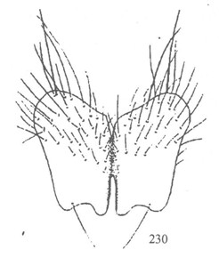 形态 ♂:体长8.0mm。眼密生浅色长纤毛;额、侧颜及颜面均棕黄色,仅中颜板和颜堤略暗;额稍狭于前单眼宽;间额在中段消失;下眶鬃仅下方4—5根,上半部裸;侧颜为触角第三节宽的1/2;触角基部两节黄,第三节暗棕色,后者长为宽的3倍;芒长羽状,最长芒毛约等于触角...