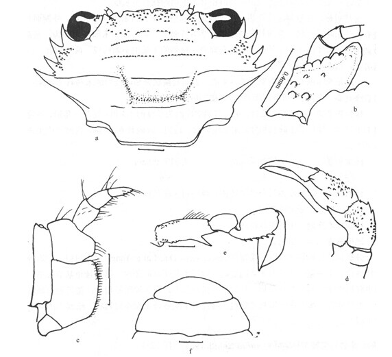 形态描述 头胸甲宽约为长的1.5倍,表面密具短毛和颗粒隆