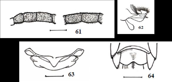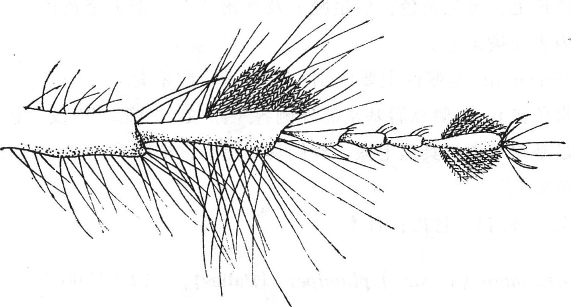 跗节宽度与胫节基部等宽;腹部第7节背板端部黄色透明状,中央稍...