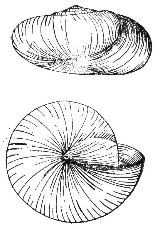 贝壳中等大小,壳质薄,易碎,半透明,呈扁圆锥形。壳高12毫米,宽20.5毫米。有6.5个螺层。顶部几个螺层增长缓慢,螺旋部低矮。体螺层迅速增长,膨大,其底部平坦。壳顶钝,缝合线明显。壳面上部呈角黄色、下部呈黄白色、并有相互交错的生长线和螺纹、在体螺层下部的生长...