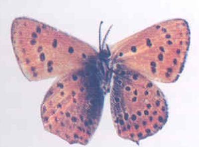 雄蝶黑紫色,反面褐色。前翅外缘有白色波状线和小点列,亚缘小白