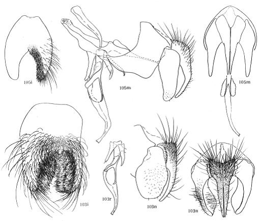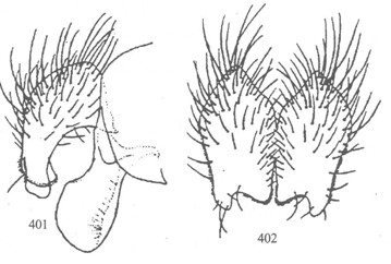 形态 ♂:体长6.5—7.0mm。眼略疏生中等长纤毛;额宽约等于触角宽,间额最狭处为一侧额宽的1/2;下眶鬃10对,接近单眼三角;侧颜约等于触角宽;触角黑,芒长羽状,最长芒毛长为触角宽的2倍;颊高约为眼高2/7,颊后头沟之后和下后头全为浅黄色毛;颊前上缘有1...