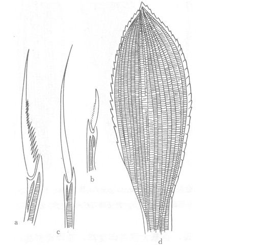 ,呈三片棱状,棱缘光滑。皮壳外骨针短,其长度为皮壳半径之半,骨针末端呈三叉状。每