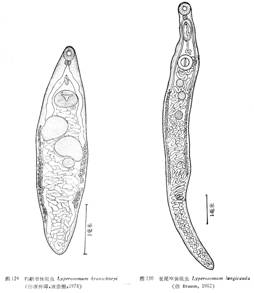 成虫形态(图129)(按唐伸璋、唐崇惕,1978b) 体呈长纺锤形,最大宽度在体中部后睾丸