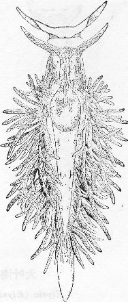 形。体长11毫米,宽2毫米。头部小,口触手呈指状。嗅角大而简单,呈棍棒状。眼位于嗅角基部,鳃突起呈纺锤形,位于体背两侧,共5列,每列排列成单一斜列。第1-2鳃列有5-4,第3-4鳃列有4-3个,第5鳃列有2个。第1与第2鳃列,第3与第4鳃列彼...