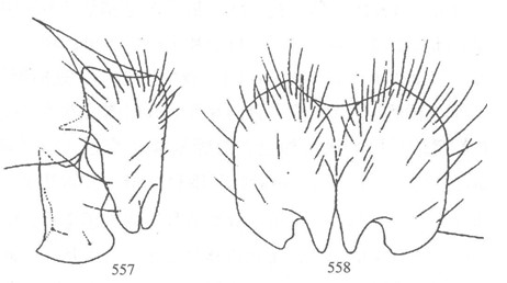 形态 ♂:体长6.5mm。眼生中等长纤毛;额最狭处约等于后单眼外缘间距;下眶鬃4—5对,其问杂以细毛,无上眶鬃;侧额、侧颜和颊具灰白色粉被;侧颜向下方去明显变狭,中部宽度等于触角第三节宽;触角基部两节和第三节基半部黄色,余黑色,第三节长为宽的2倍强;芒羽状,...