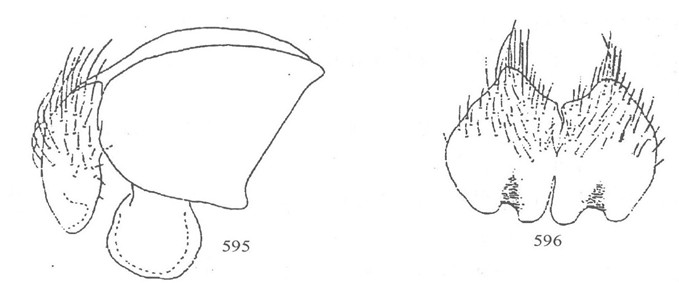 形态 ♂:体长8.0mm。眼具疏短纤毛;额宽略大于触角第三节宽,间额宽为一侧额宽的2倍;下眶鬃7—8对,往上去变细小,无上眶鬃;侧额,侧颜及颊具灰棕色粉被;侧颜宽约为触角第三节宽的3/5;触角黑,第三节长约为第二节长的3倍,芒长羽状,最长芒毛略长于触角第三节...