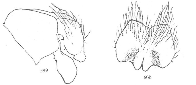 形态 ♂:体长6.0—6.5mm。眼密生棕色短纤毛;小眼面不扩大;额为前单眼宽的1.3—1.6倍;间额中段消失;下眶鬃9—11,上方5对细小,达单眼三角,无上眶鬃;侧颜略狭于触角第三节宽(4:5);触角黑褐色,第三节长为宽的2倍强,芒长羽状,最长芒毛为触角第...