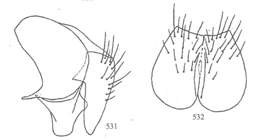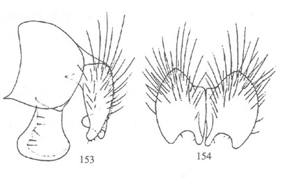 形态 ♂:体长6.0mm。眼密生浅色短纤毛;上中部的小眼面扩大;额略狭于前单眼宽(3:4);侧额褐色,间额和侧颜棕色;下眶鬃9对,上方4对毛状,无上眶鬃;间额在中段消失;侧颜狭,约为触角第三节宽的1/2;触角黑褐色,第三节长为宽的2.5倍;芒长羽状,最长芒毛...