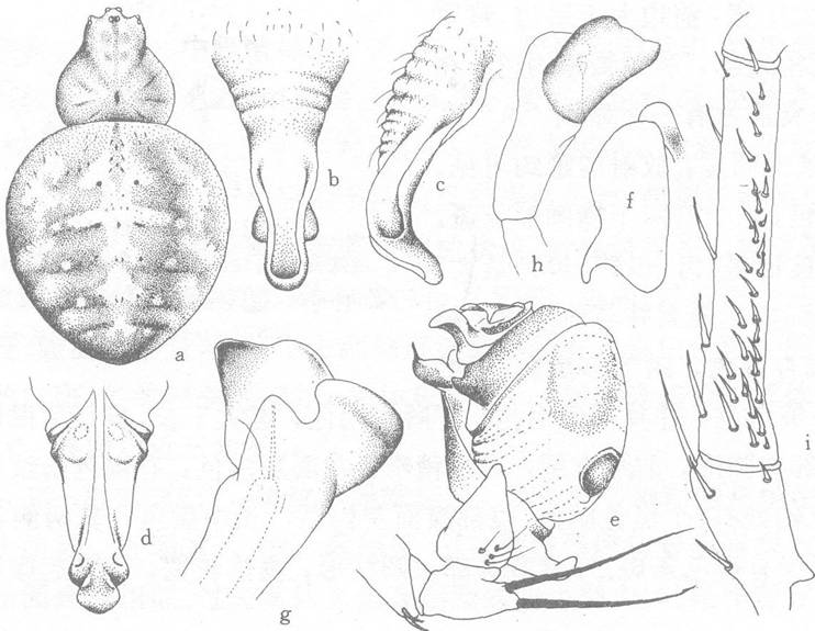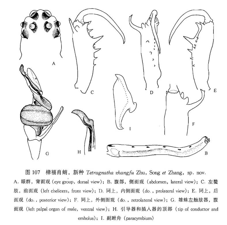 雄蛛体长6.39—6.58。正模体长6.58:头胸部长1.83,宽0.75;腹部长4.75,宽0.58。螯肢长1.03。背