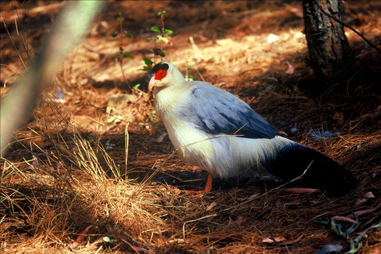 虹膜-红色;嘴-黄色,盔突有褶皱;脚-黑色。