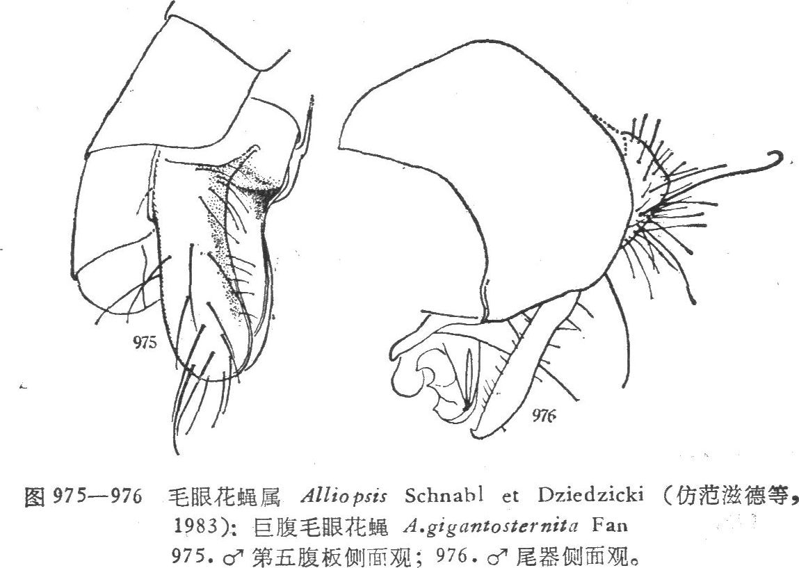 形态特征 ♂体长5.5—6毫米。 眼裸,外顶鬃明显;额宽为后单眼外缘间距的2倍强,间额为一侧额的4倍宽,上眶鬃缺如,下眶鬃3,间额鬃1对,发达;头前面粉被银妇色;侧颜微狭于触角第三节宽;触角第三节为第二节的2倍长,芒裸,基部增粗。颊高为侧颜宽的2倍...