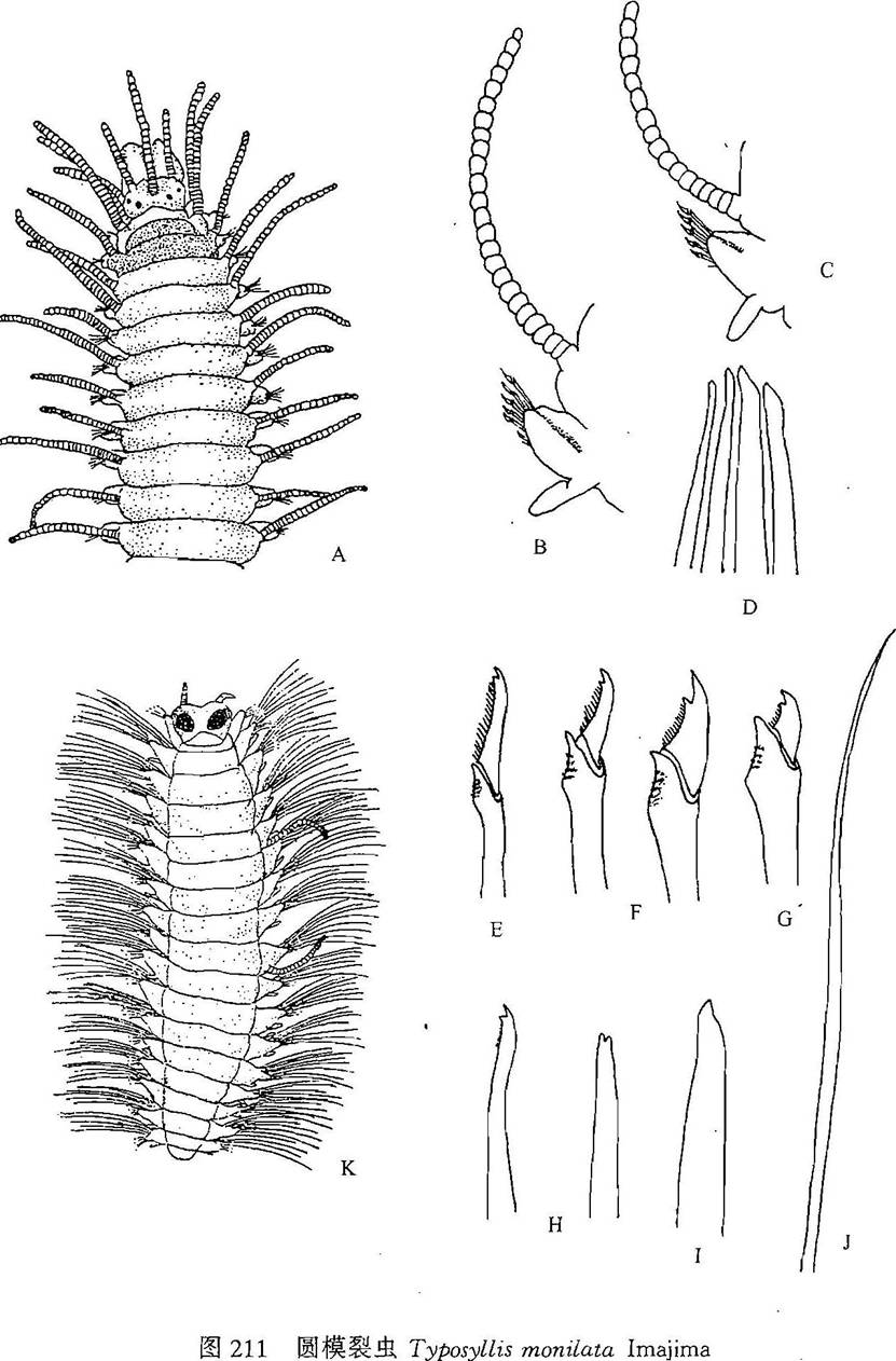 形态特征 体长20—22 mm,体宽(含疣足)1—1.2 mm,具80—108个刚节。