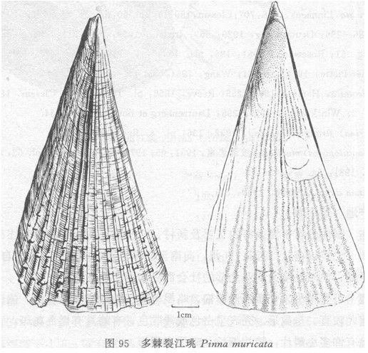 内面色浅,一般肌痕明显。铰合部简单,具有2—5个不等的粒状小齿;韧带细长,韧带脊明显。足丝孔不明显,足丝发达。