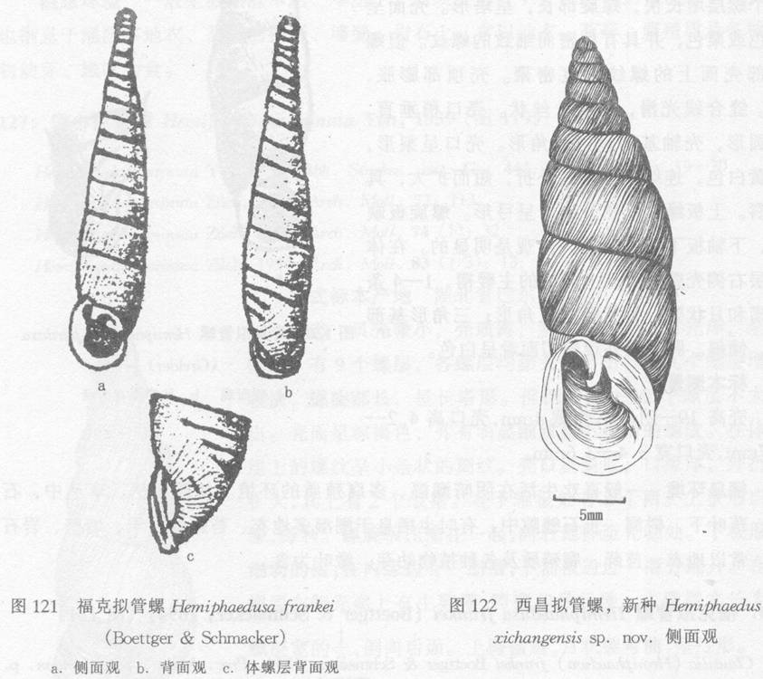 高4.6毫米,宽2.8毫米。有4 个螺层,各螺层膨胀迅速增长,并呈梯状排列,螺旋部呈宽圆锥形,