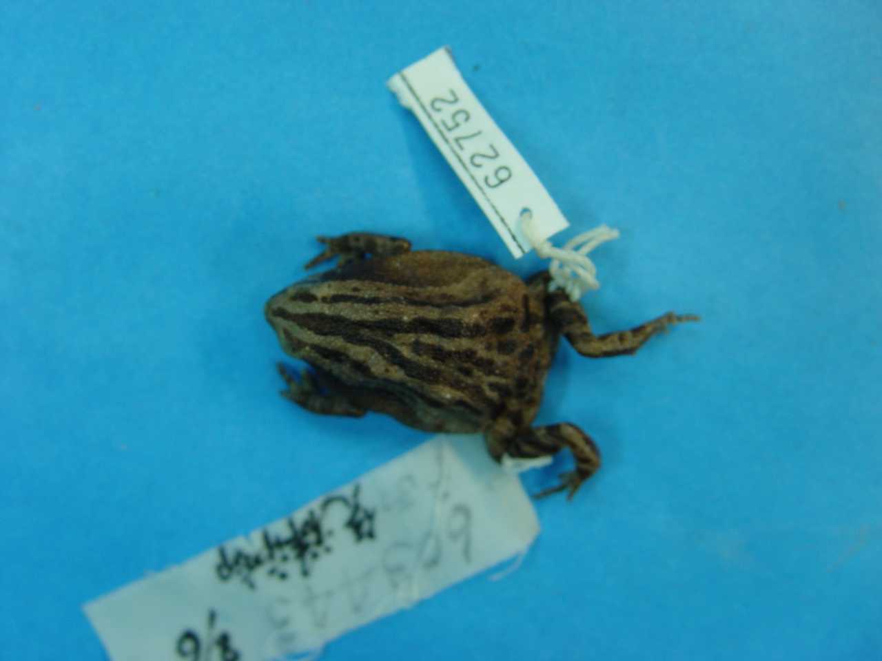 木的雌蛙体长37.2—52.0mm,其他部位量度数据见表459;Dubois(1976)记载尼泊尔标本:172只雄蛙体长为27.5--3.0mm,87只雌蛙体长为36.0—52.5mm。头...
