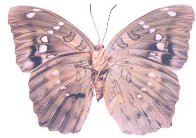 特别明显。后翅反面大部分白色从前缘到外缘黑色圆