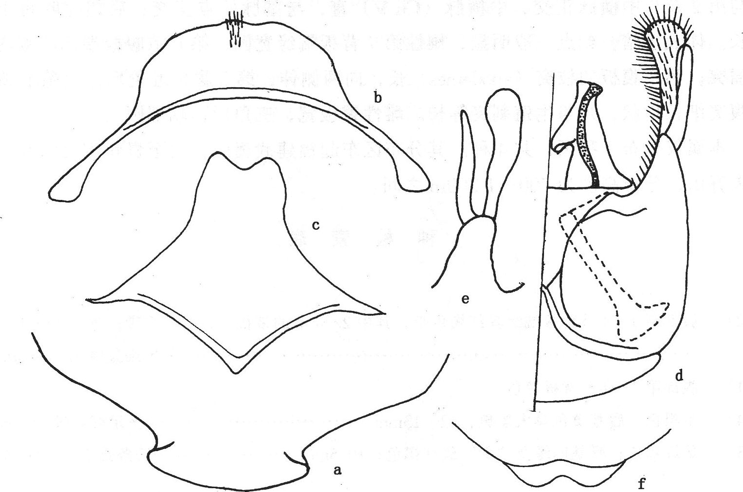 ,区别为:(1)颅顶被浅黃色毛。(2)中胸背板被黃色毛,间有极少量的黑毛。(3)腹部第2节背板黄或浅黃色毛,无黑毛。(4)翅痣晴褐色。(5)触角被黑色毛。