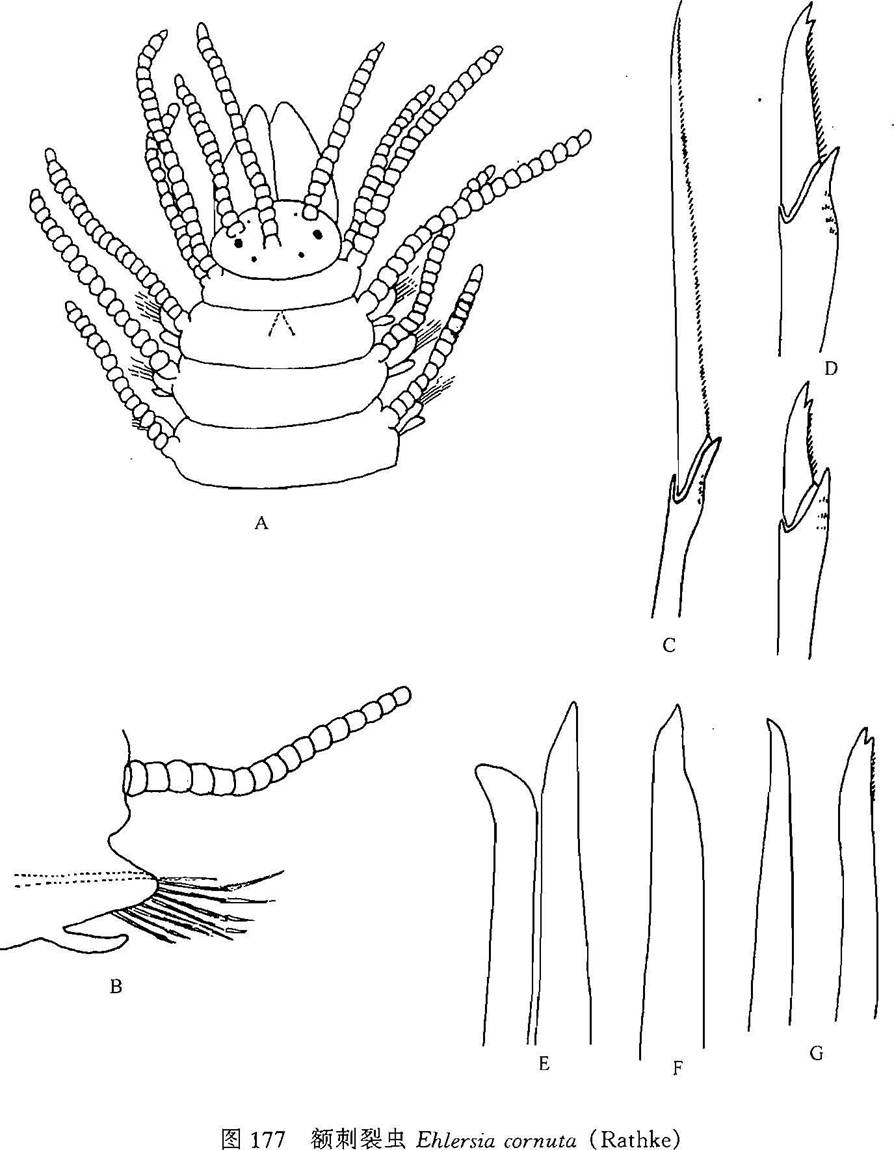 勒缢。胸长约为头长的2倍多。全身具大小相异、排列不