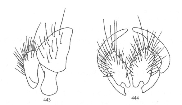 形态 ♂:体长7.0mm。眼疏生黄棕色长纤毛,前部的小眼面扩大;额宽等于或狭于前单眼宽;侧额邻接,下眶鬃仅下方4对粗大,上方8—9对短毛状,无上眶鬃;侧颜宽约为触角第三节宽的2/3;触角黑褐,芒长羽状,最长芒毛为触角第三节宽的2倍长;颊高为眼高的1/5弱;口...