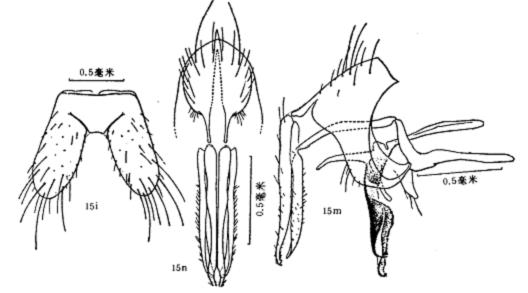 倍弱。上倾口缘鬃1行;触角第三节长为第二节的倍,芒长羽状;中喙前颏长为高的4倍弱。胸背...