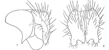 形态特征 ♂ 体长5.5毫米。额宽微宽于后单眼外缘间距,间额宽为一侧额宽的2倍,下眶鬃5—6个,间额鬃小毛状,侧颜宽为触角第三节宽的倍,颊高为侧颜宽的