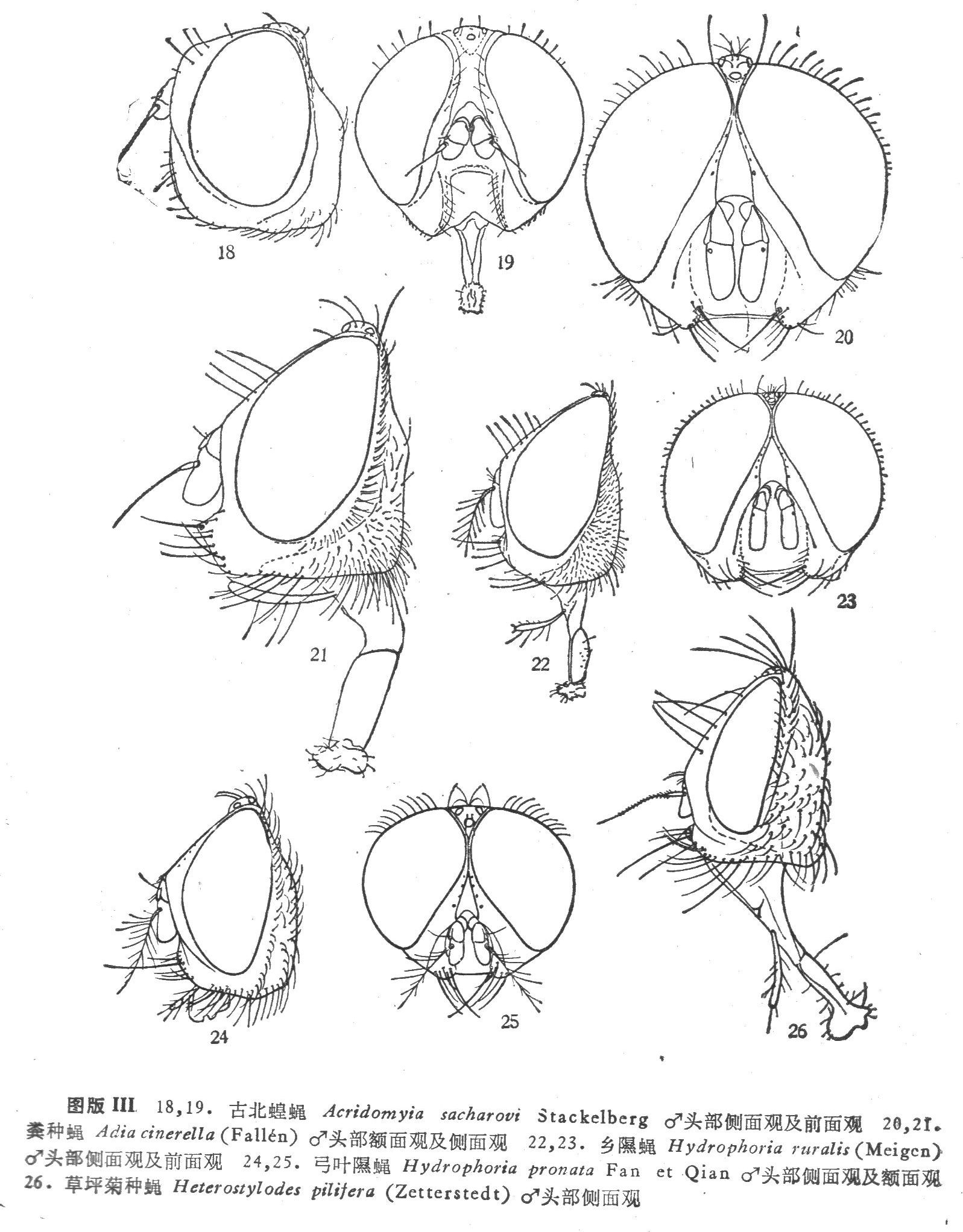 形态特征♂、♀ 体长3.5-5.5毫米。♂额宽约为触角第三节之半,黑色。♂间额消失或存在,(♀间额完全黑色,或有时前方略带红色,间额鬃存在)。间额鬃缺如,侧颜显较触角第三节为狭,约为其宽之半,额、侧颜及下侧颜均黑色,覆银灰色粉被,上倾口缘鬃一行;触角芒具毳...