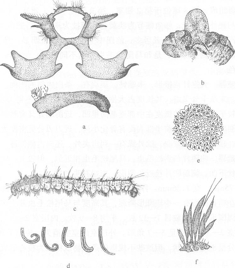淡灰褐到褐色;前翅中室末端有一不明显的白点,位于弧状内横线上或稍偏外侧;前缘呈弧形,但不像马