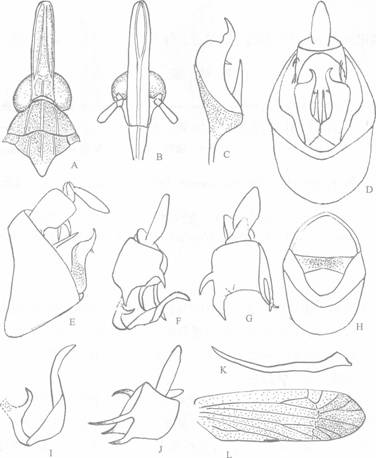 头顶、胸部背面与腹部包括各足基节暗褐乃至浅黑褐色,但有的个体前中胸背板侧脊间色稍浅淡,整个面部包括触角及胸足除基节外为污黄褐色。前翅翅脉及端区大部分黑褐色,但前缘区及爪片后缘区色浅淡几透明。翅斑线条形,黑褐色。腹部背面与各腹板基缘浅黑褐色,腹板其余部分与背板侧...