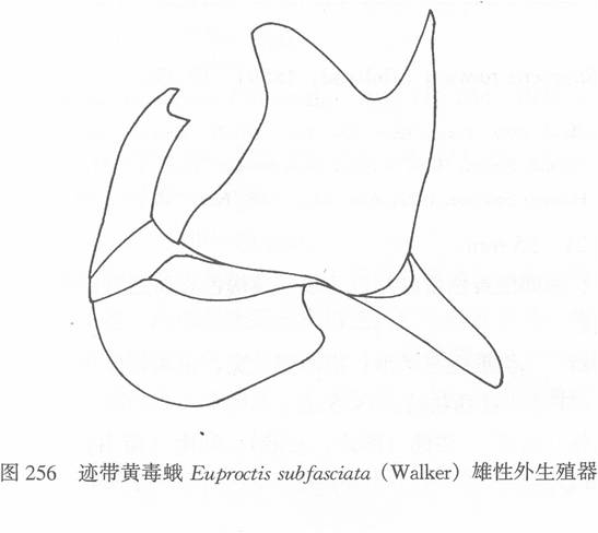 色,线间后半部布赭色鳞,形成一个隐约可辨的中带。后翅