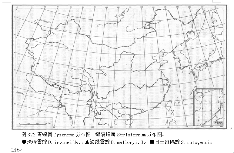 雌性 同珠峰霄蝗近似,但较粗壮,笨拙。触角等于头和前