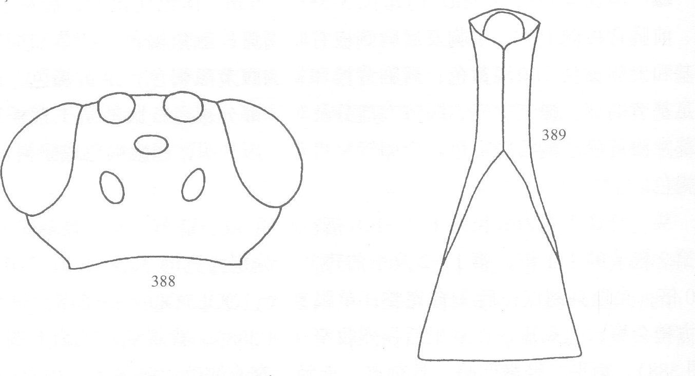 头似葫芦状,长大于宽,近后端最宽,触角窝后明显收缩,头后缘中部微凹人,侧观鼻平直,上颚钝,无尖刺,触角13节,第4节最短,第3节稍短于或几等于第2节。前...