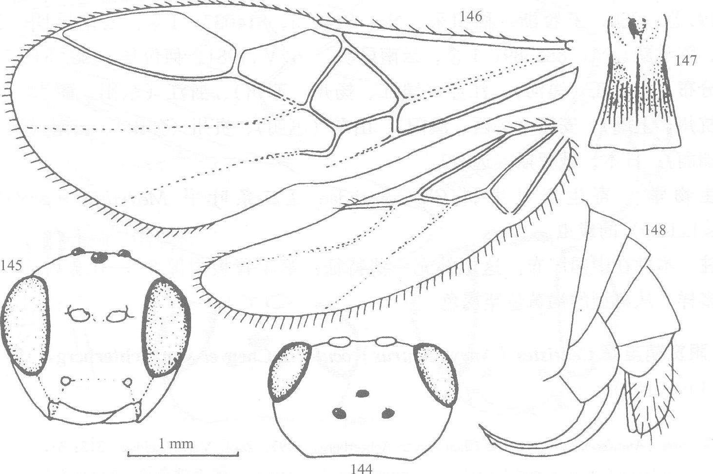 头 背观宽为长的1.4—1.6倍(图144);上颊在复眼后方渐...