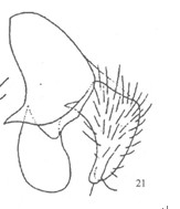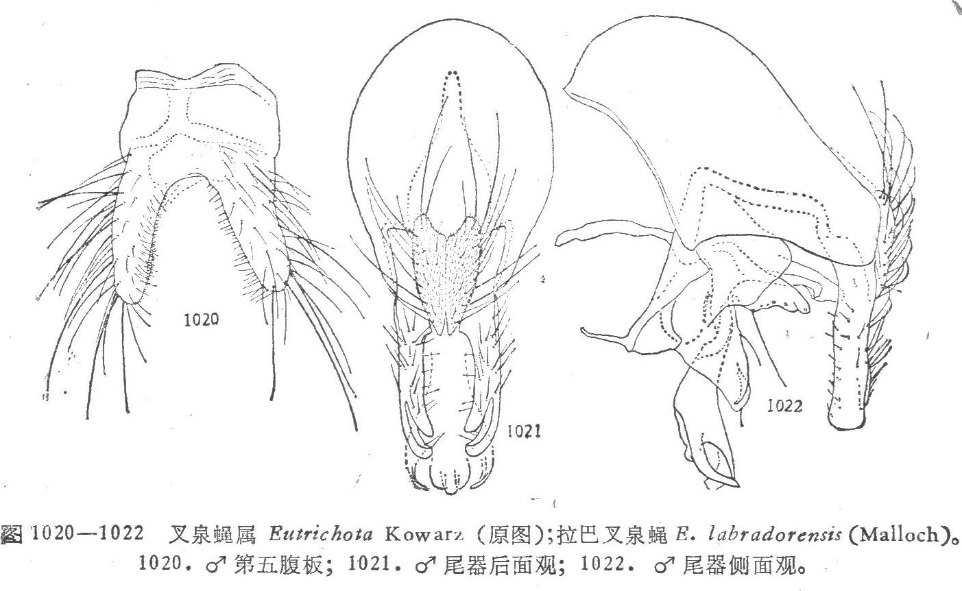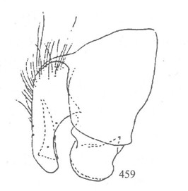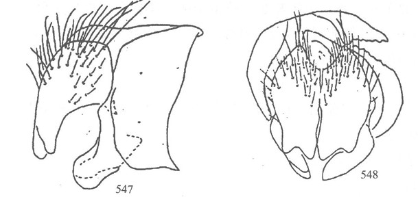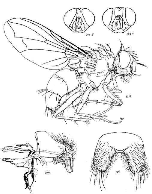 形态 ♂:体长7.0mm。眼密生短纤毛;毛长仅及前单眼宽;上中部的小眼面略扩大;额稍狭于单眼宽;侧额、间额及侧颜均棕色;触角暗褐色,第三节长为宽的4倍;芒羽状,最长芒毛等于触角宽;下眶鬃4对长大,向上方去呈小毛状;间额在上2/3消失;侧颜略狭于触角宽的1/2...