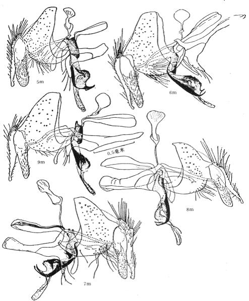 形态特征 ♂ 体长5.5毫米。额狭于前单眼宽之半,间额在最狭处消失,前方带棕色,头部粉被银白,侧颜稍狭于触角第三节宽,问额鬃短小,下眶鬃5对;触角第三节为第二节的2倍,芒最长的分枝毛不超过触角第三节宽的1倍;颊高约为触角第三节宽的1倍,前颏具粉被...