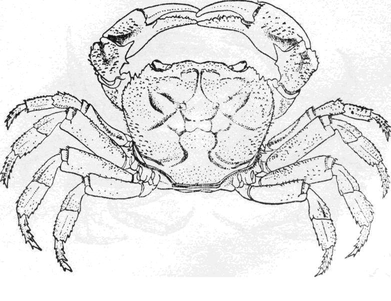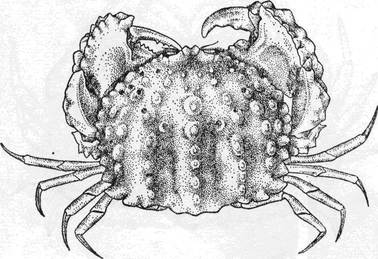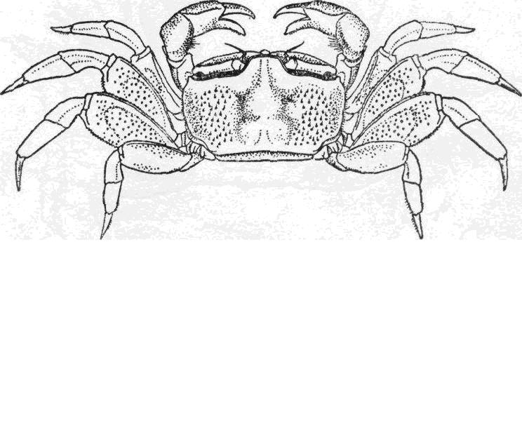 头胸甲的寬度稍小于长度的1.5倍,表面分布着具短刚毛的顆粒,在鳃区校显而密。胃、心区有明显的浅沟相隔。額寬小于头胸甲寬度的1/3,表面中部具一寬沟,向后延伸至胃区,眼窝背、腹緣均具顆粒。側緣具細小顆粒及短刚毛,在外眼窝齿之后稍內凹。螯足,雄此雌大,长节的背、腹...
