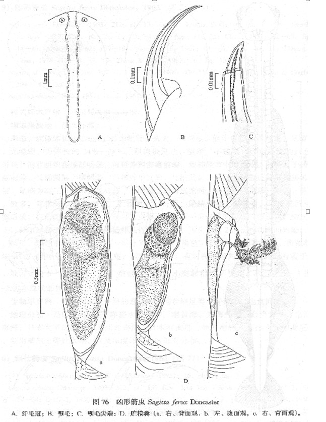 形态 成体体长达22mm。体形粗壮,头大,颈明显,躯干各段基本等宽。尾节粗壮,无缢缩,为体长的24%—28%。肌肉极发达,强硬,不透明,固定后呈粉红色,侧带狭。泡状组织在颈部明显,可延伸到前鳍前端。腹神经节中等大小。前鳍起于其中段或前缘,长椭圆形,满鳍...