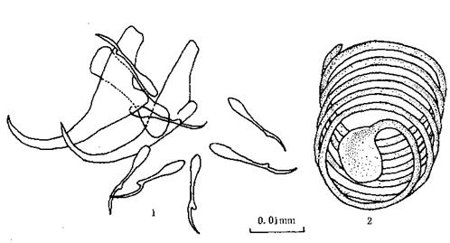 边缘小钩全长0.031-0.034mm,钩尖长0.005-...