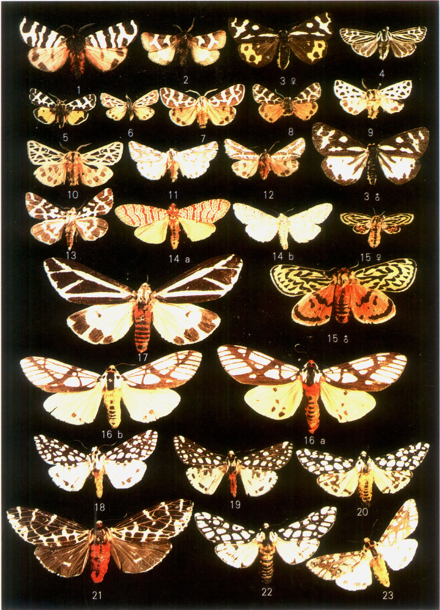 条;腹部黄色或橘黄色;臀毛丛雌蛾橘黄色;雄蛾在第8节背板上有一黑斑...