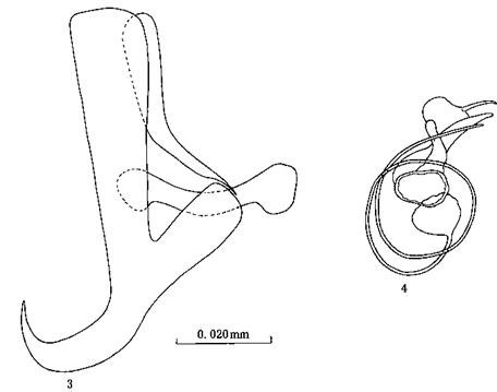 边缘小钩全长0.023-0.026mm,其中最大的边缘小...