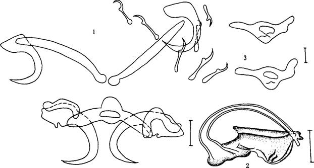 边缘小钩发育完全,长0.029-0.049mm。中央大...
