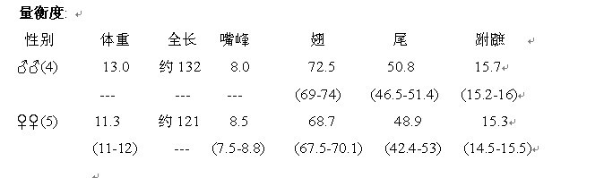 色,外侧小覆羽和中覆羽黑色;大覆羽、初级覆羽和次级飞羽银灰色;初级飞羽外侧6枚黑色,基部缀