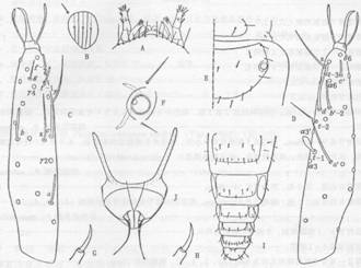 全长1 100—1 246μm。头长103—105μm,宽74—81μm;口器略向前伸,上唇长13—14μm,具上唇刚毛,唇基内骨不明显;假眼较大,16μm×14μm,具中隔,头眼比=6.0—7.0。