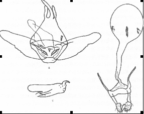 色光泽的宽纵条;腹节Ⅵ-Ⅷ两侧有明显长毛簇。雄蚊中跗节2-3或2-4全白;抱肢基节腹内缘有很多长或较长刚毛。幼虫中胸背侧片完整;腹毛11-Ⅱ羽状;腹节Ⅶ侧背片生有1根棘毛和4根刚
