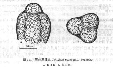 ,有许多不同大小的圆孔,胸部有3条深沟使胸部分为3个凸圆柱状构造,3条深沟延向基部逐渐消失。胸部具大