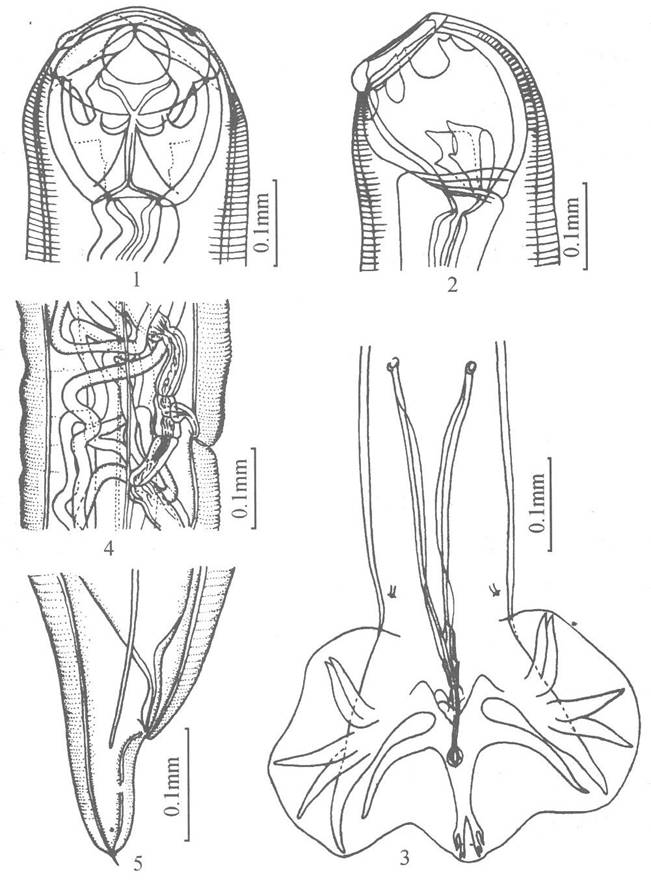 0.60—0.64 mm。交合伞发达,2腹肋粗