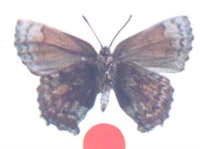属光泽。前翅反面古铜色,外横线两度弧状弯曲,线外青色,亚缘线微波状。后翅反面基半部黑色,端半部古铜色,外横带黑色,微波状,两侧镶有白线,外侧的白线较宽,亚缘线与外缘线愈合。