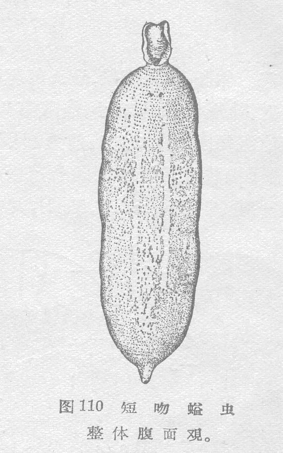 体长63-120毫米,寬10-22毫米。吻短而平,长11毫米,寬6毫米,基部则成管状,中即为口。皮肤粉紅色。表面多不規則圆突起,腹面似成环排列,粗而密,至体后端小而疏,背面較少,后部光滑。体壁薄,有时呈半透明,体壁内可見到7条狹細的纵行肌束,束間較薄,并无空隙...