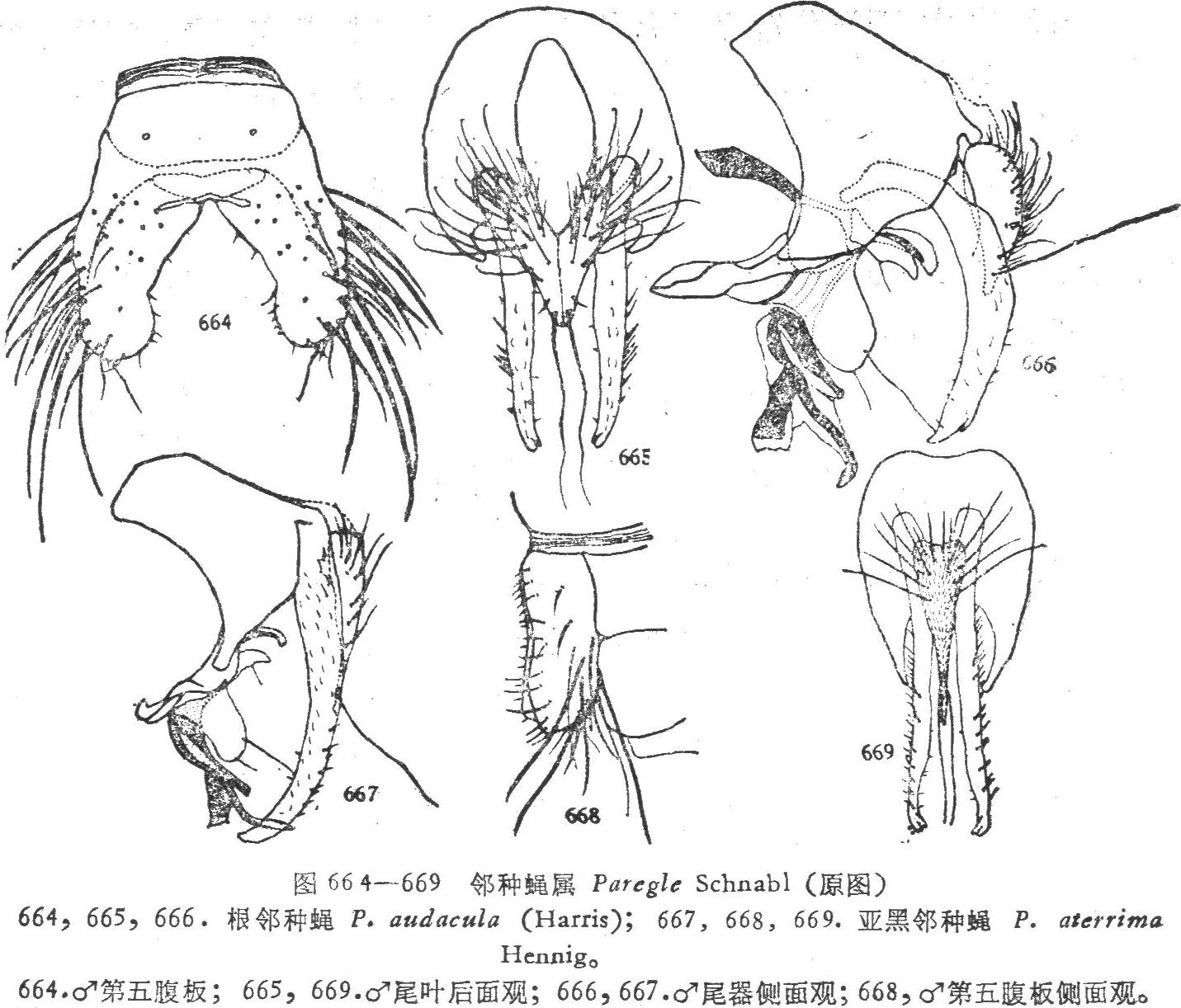 形态特征 ♂体长6—7.0毫米。♂额宽稍大于后单眼外缘间距,间额约为前单眼宽的倍,间额鬃缺如,上眶鬃1;触角芒具很短毳毛,前倾口缘鬃长密。口前缘髭间矩很狭。翅前鬃长约等于前背侧片鬃,背侧片有4—7个小毛,小盾片有稍密的毛,腹侧片鬃1:1。前胫有一前腹...