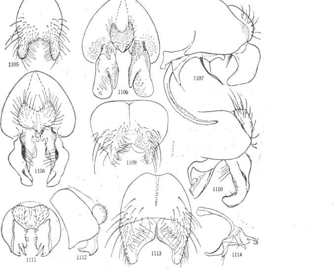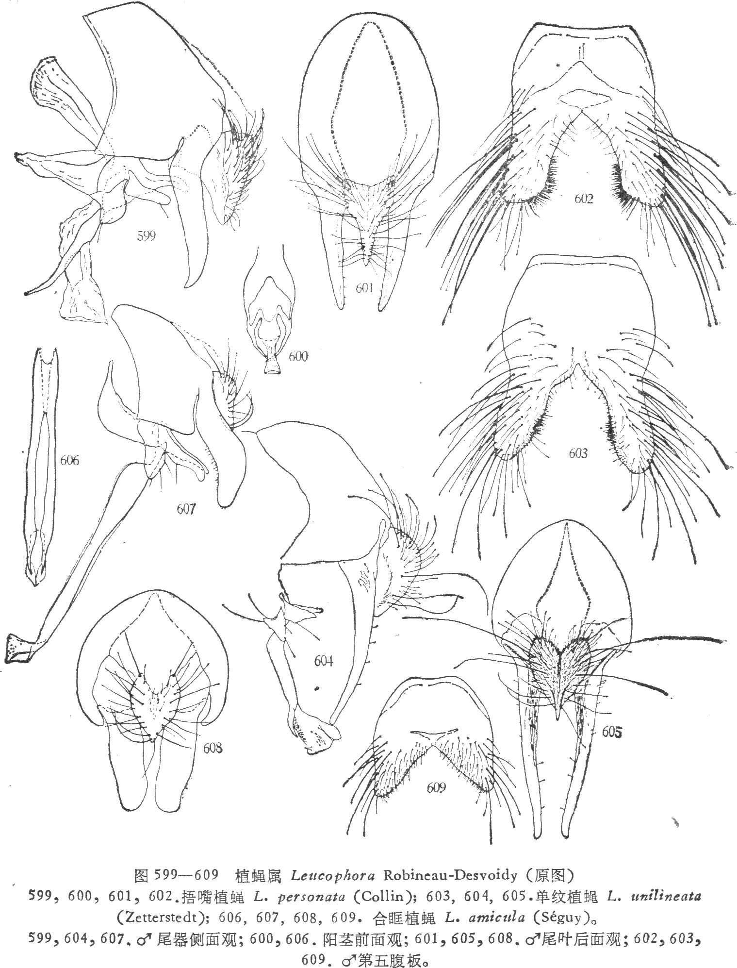 形态特征 ♂ 体长5.5毫米。外顶鬃明显,额宽或多或少等于前单眼宽;间额黑,消失或为一侧额的宽,下眶鬃6—8;侧颜粉被银灰,等于触角第三节宽;颊高为侧颜宽的一倍半;上倾口缘鬃2行;触角黑,第三节为第二节的2倍长,芒具毳毛,芒基粗。下颚须黑,末端扁,...